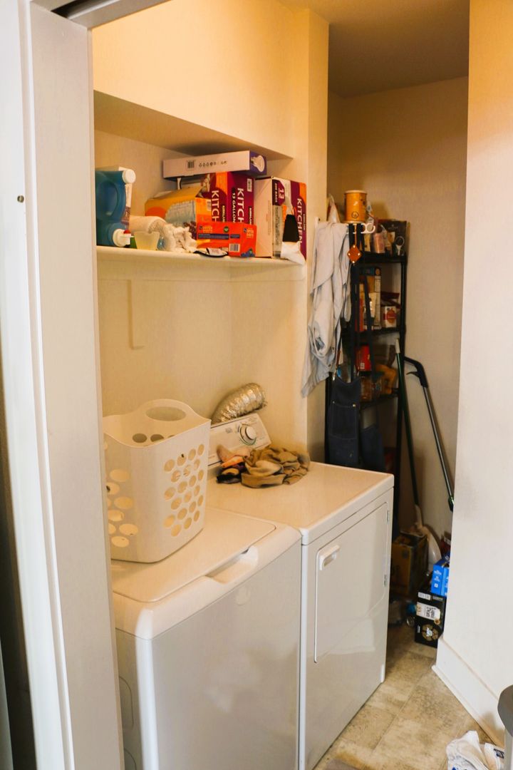 The upstairs has ample natural light through skylights in both full bathrooms and over the stairwell. The three bedrooms have ample closet space for storage. This condo also comes with in-unit washer and dryer for practical convenience, as well as air conditioning for summer comfort. Two designated parking spaces in the parking garage are included, as well as a garage storage closet.