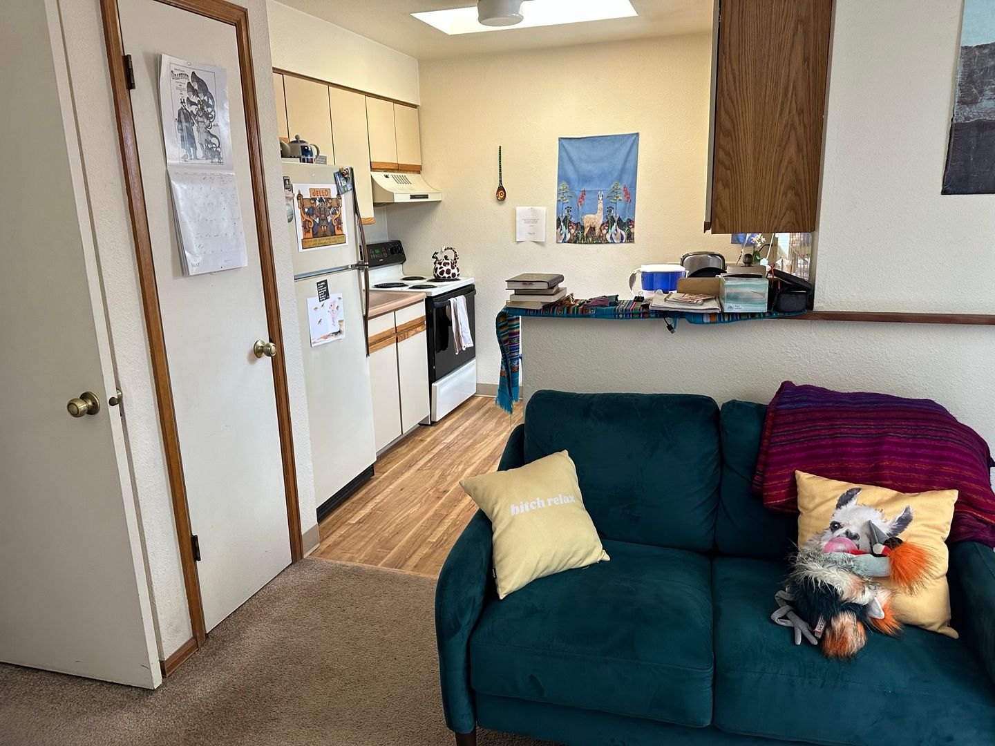 This comfortable 1-bedroom, 1 bathroom apartment is conveniently located next to the CU and Naropa campuses. The one bedroom has a spacious walk-in closet and en suite bathroom. A wood burning fireplace makes for a cozy family room. The kitchen is a nice size with plenty of counter space for food prep and includes all full size appliances.