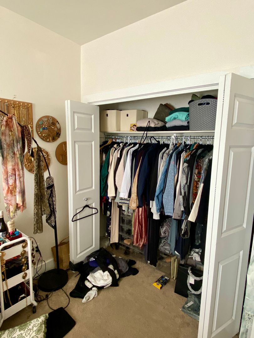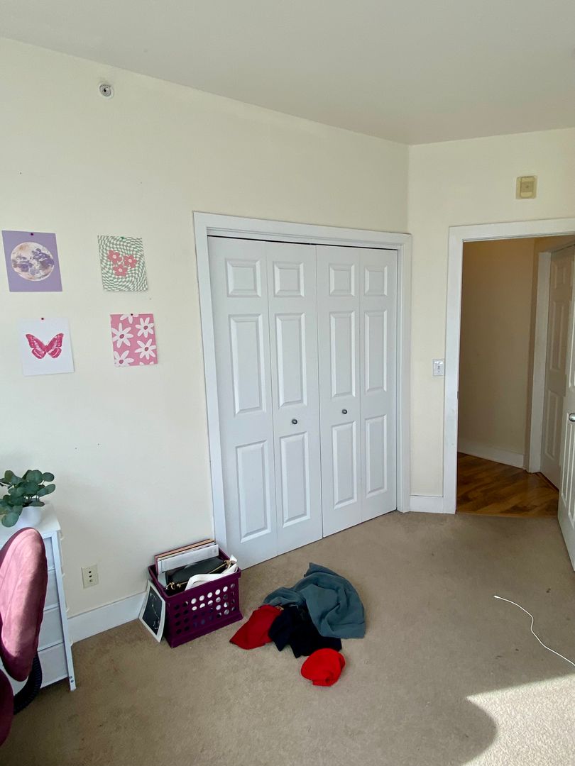 Storage galore! All 4 bedrooms have sizable closets. Also included are Air Conditioning for your summer comfort, clothes washer and dryer, three designated parking spaces in the parking garage, as well as a garage storage closet. Enjoy the condo building's small gym facility, included.